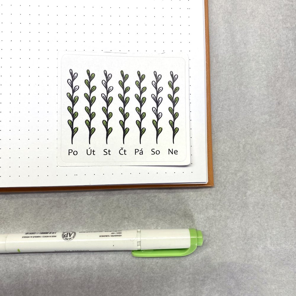 Každá samolepka nabízí místo pro zaznamenání celého týdne. Ať už sledujete své aktuální zvyky, nebo se do své rutiny snažíte dostat něco nového.