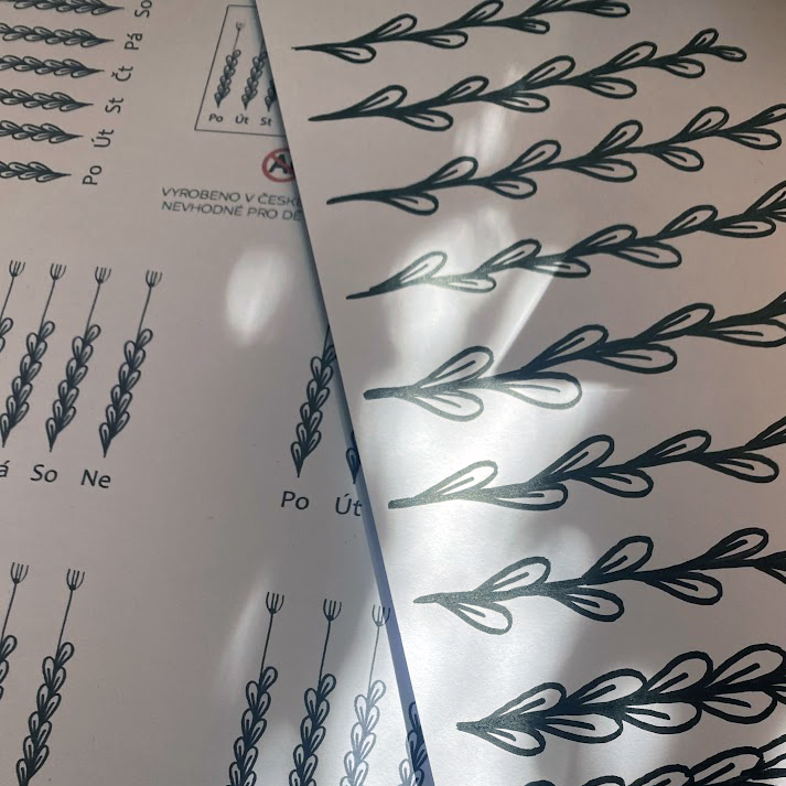 Plánovací samolepky tiskneme především na tenčí matný papír, který je příjemný na dotek a dobře se na něj píše a kreslí.