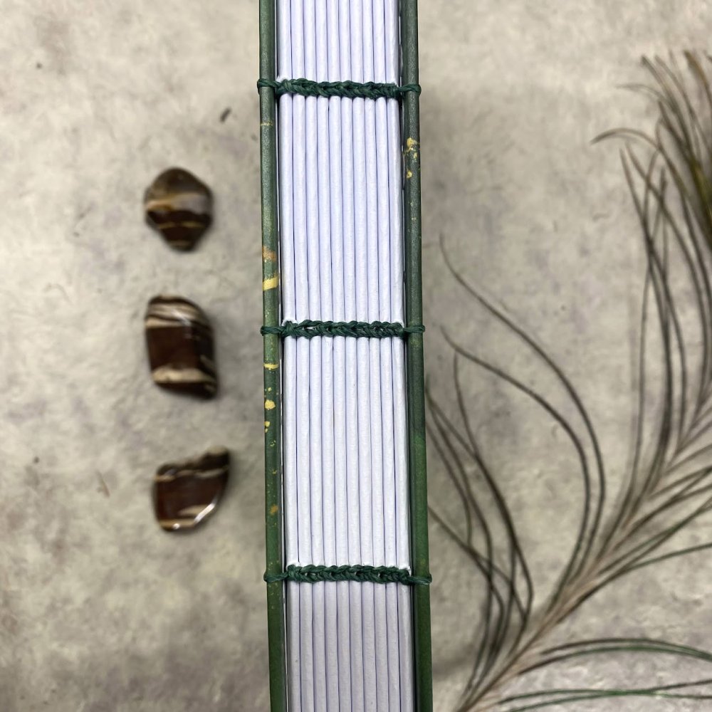 | 📒 Koptská vazba - ruční způsob šití zápisníku. Nemá hřbet, vazba je volnější a snese spoustu obsahu bez deformace zápisníku. Krásně se otevírá a zapisník je dokonale plochý pro psaní. Stránky se dají využít až do krajů, vazba nikde nepřekáží. |
