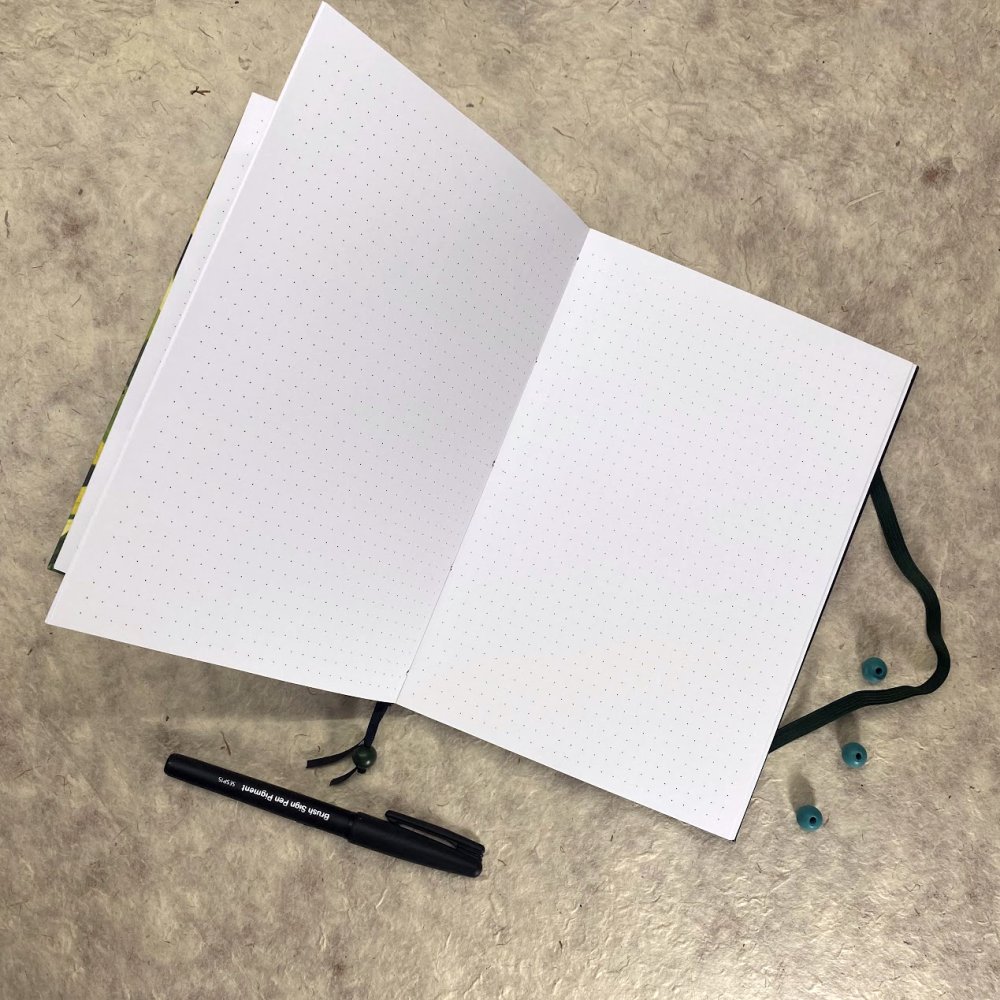 Tečkovaná lineatura vám dává svobodu – můžete plánovat, psát texty, kreslit i kombinovat vše dohromady. |