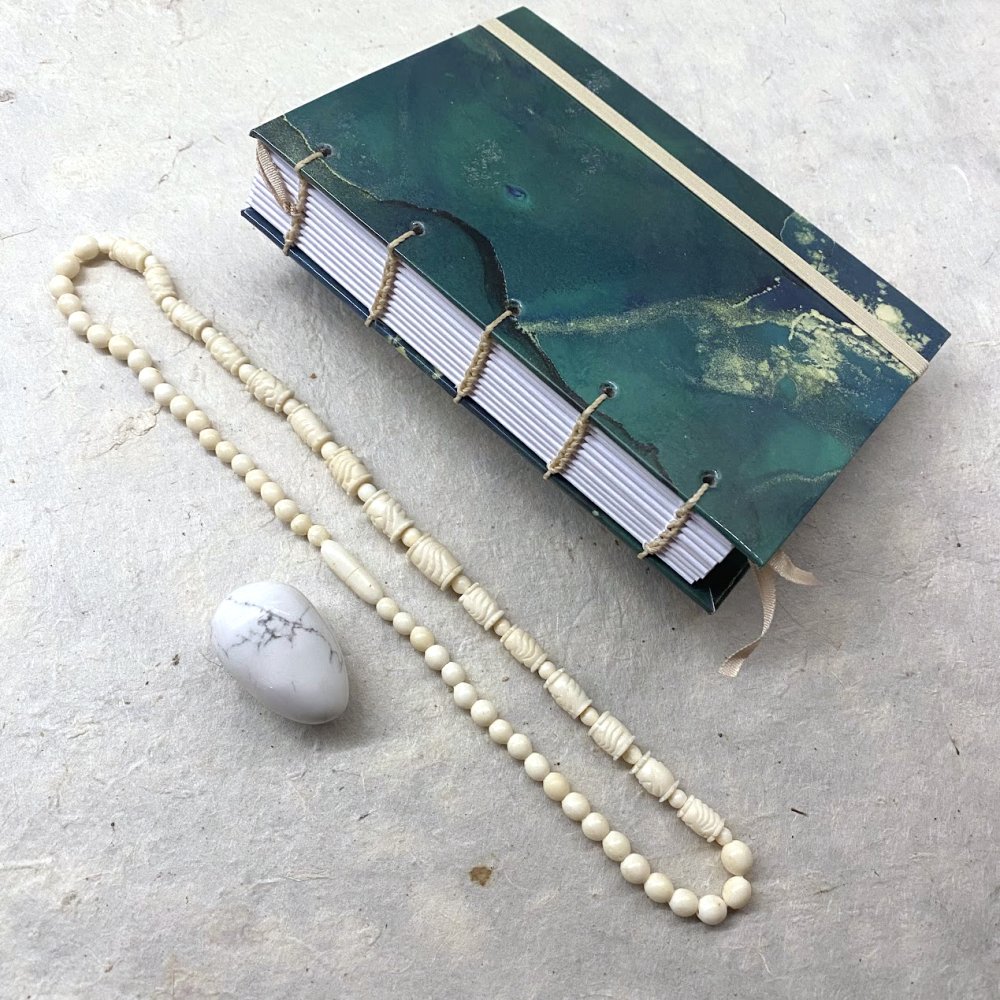 | 📒 Koptská vazba - ruční způsob šití zápisníku. Nemá hřbet, vazba je volnější a snese spoustu obsahu bez deformace zápisníku. Krásně se otevírá a zapisník je dokonale plochý pro psaní. Stránky se dají využít až do krajů, vazba nikde nepřekáží. |