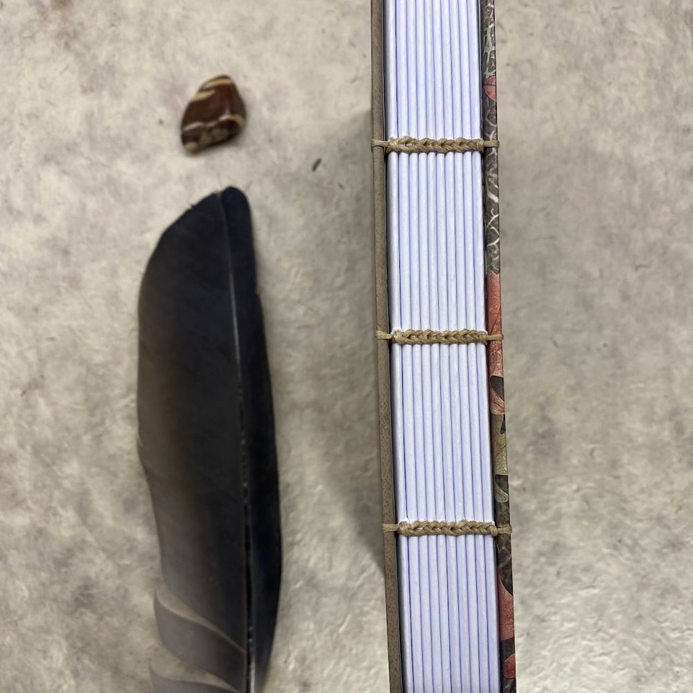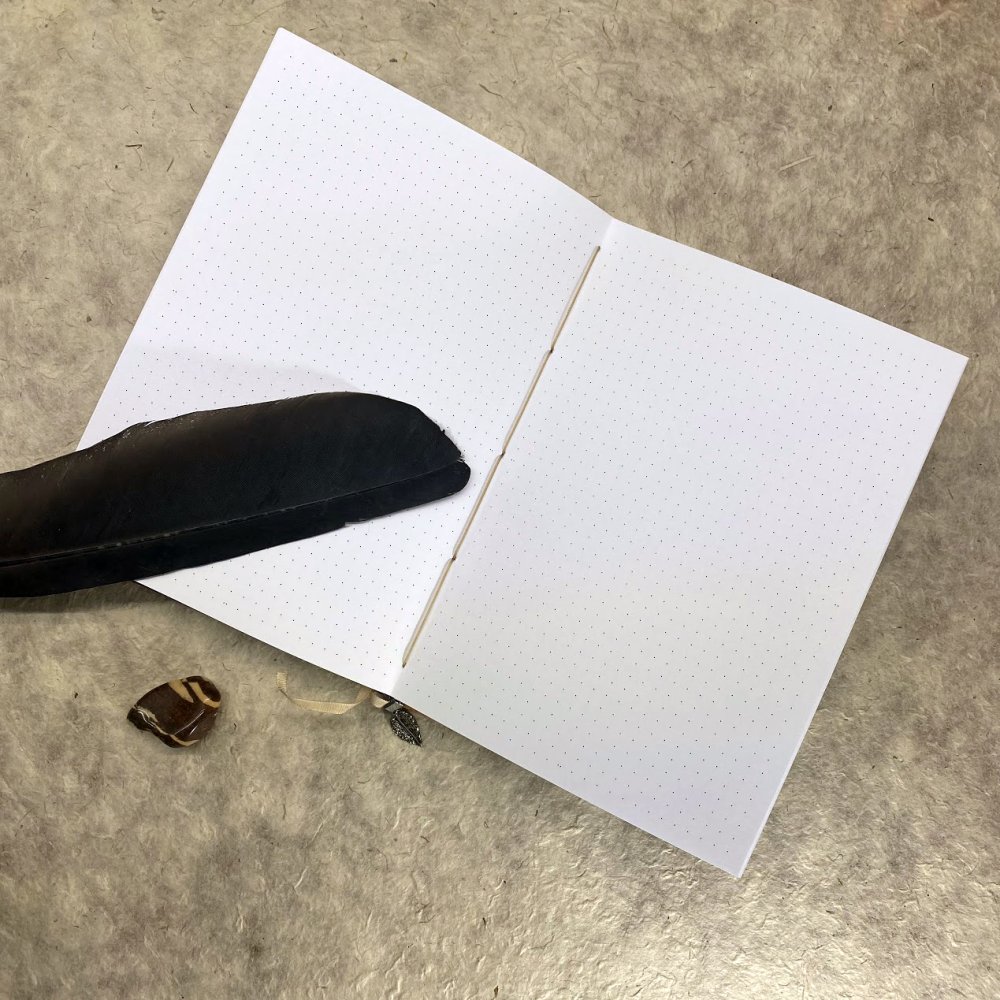 | 📒 Koptská vazba - ruční způsob šití zápisníku. Nemá hřbet, vazba je volnější a snese spoustu obsahu bez deformace zápisníku. Krásně se otevírá a zapisník je dokonale plochý pro psaní. Stránky se dají využít až do krajů, vazba nikde nepřekáží. |