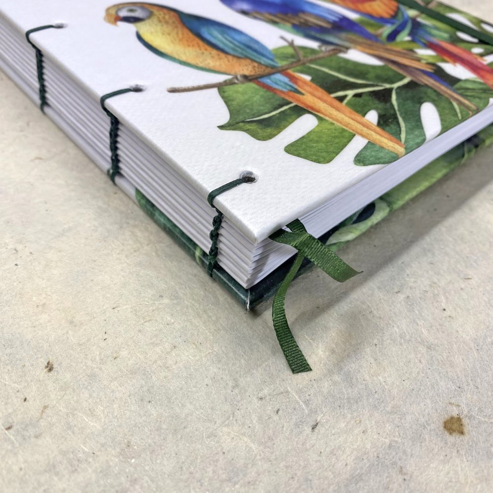 | 📒 Koptská vazba - ruční způsob šití zápisníku. Nemá hřbet, vazba je volnější a snese spoustu obsahu bez deformace zápisníku. Krásně se otevírá a zapisník je dokonale plochý pro psaní. Stránky se dají využít až do krajů, vazba nikde nepřekáží. |