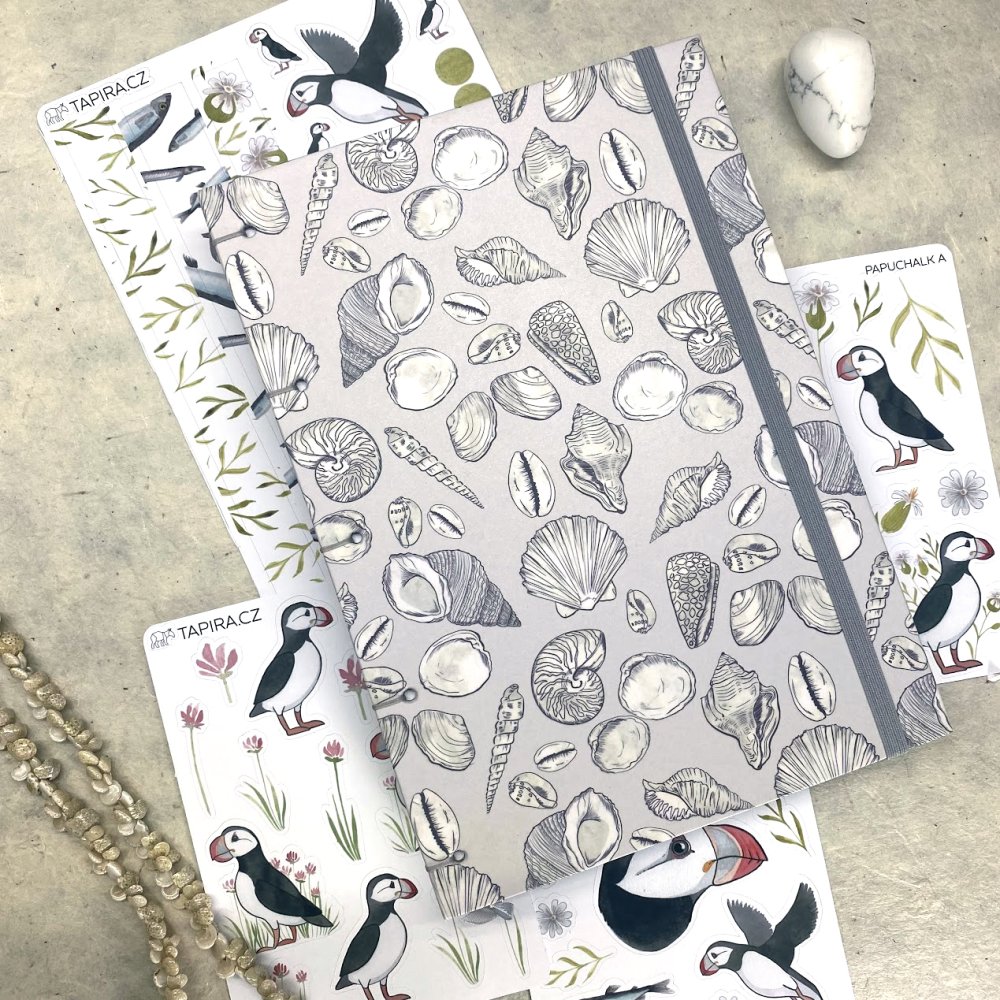 Tento zápisník je navržený tak, aby vám usnadnil psaní, plánování i dlouhodobé používání. Jemný motiv mušlí v neutrálních šedých tónech neruší pozornost a pomáhá udržet soustředění – můžete se plně věnovat obsahu, ne obalu.