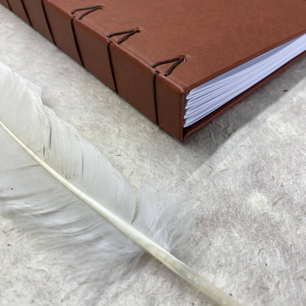| 📒 Secret belgian vazba s pevným hřbetem - ruční způsob šití zápisníku se hřbetem. Estetikou má připomínat staré japonské způsoby šití. Vazba je volnější a snese spoustu obsahu bez deformace zápisníku. Krásně se otevírá a zapisník je dokonale plochý pro psaní. Stránky se dají využít až do krajů, vazba nikde nepřekáží. |
